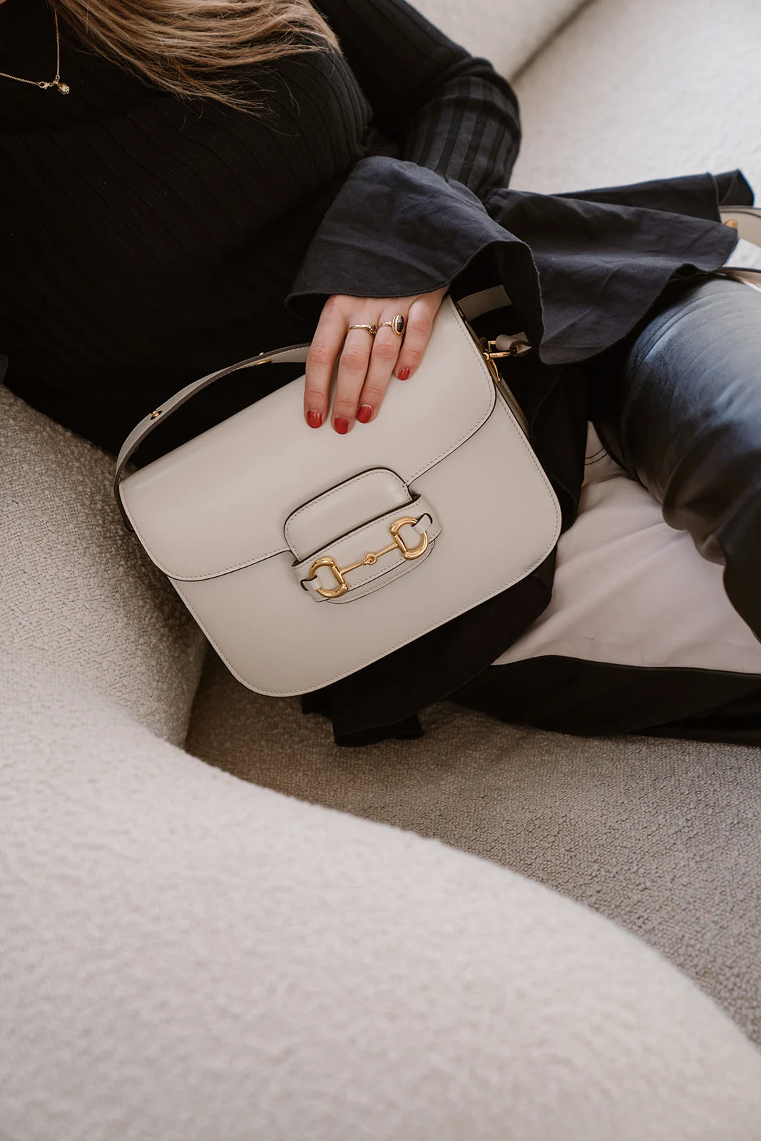 De Gucci 1955 horsebit tas is inmiddels een klassieker in de Gucci collectie. De herkenbare gouden horsebit details maken deze tas understated chique. De Gucci 1955 horsebit tas is crossbody en als schoudertas te dragen door de verstelbare schouderband. Een multifunctionele tas die je eenvoudig stylet voor overdag of de avond.
