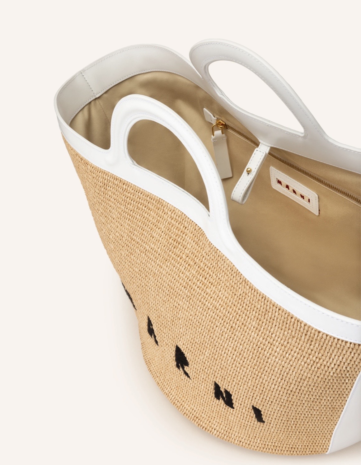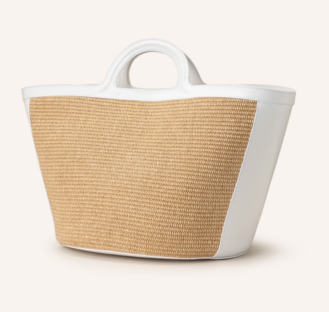 Deze Marni tropicalia rieten strandtas is super stylish en wat minder op straat te zien dan de Loewe tassen. De combi van raffia en wit leer maakt deze Marni tas ook perfect voor in de stad. Echt alles wat je nodig hebt pas in deze tas,  dit is het grote formaat van de Marni tropicalia rieten strandtas. De perfecte zomer essential als je het ons vraagt.